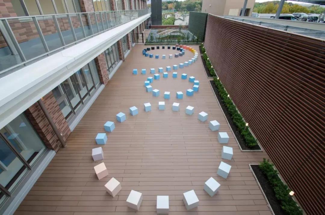五顏六色的長凳在露天陳設,你可以在一所新的大學醫院大樓的屋頂花園里找到它們。這些立方體形狀的