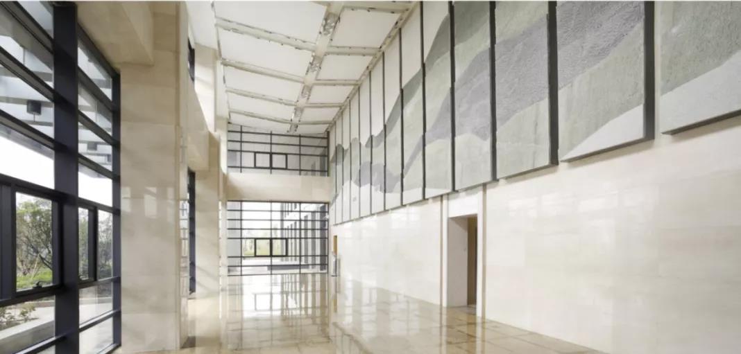 以當(dāng)代的藝術(shù)手法,將元素意象加以夸張放大,產(chǎn)生具有震撼力的效果,夸張的目的是為了突出事物的本質(zhì)特征 , 是在某種限度和原則指導(dǎo)下的夸大和強(qiáng)調(diào),以引起人們的共鳴,這種夸大的結(jié)果使人明白作品的“形”所強(qiáng)調(diào)的意義。如杭州市下沙醫(yī)院住院廳背景墻石材浮雕“富春山居”意境清和,悠閑自在,寧靜致遠(yuǎn),取材于元朝書畫家黃公望以杭州富春江為背景所創(chuàng)作的、被稱為“中國十大傳世名畫”之一的《富春山居圖》。