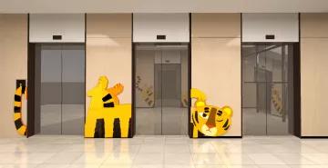 方案對傳統(tǒng)《十二生肖》造型形象運(yùn)用了正負(fù)形態(tài)轉(zhuǎn)換的表現(xiàn)方式.進(jìn)行重構(gòu)和重組.吸納當(dāng)代藝術(shù)中構(gòu)成手法和色彩表現(xiàn)力,并選用當(dāng)代新型的有機(jī)材料進(jìn)行制作和呈現(xiàn),把渾厚的生肖動物造型形態(tài)與多變的視覺認(rèn)知融為一體.有效地重塑和活化了呆 無趣的候診空間,就診兒童通過對十二生肖形象的尋找,每個人都可以對號入座,找到與自己的屬相相應(yīng)的對象,這樣可以促使孩子們在觀看中,觀察和體驗(yàn)周邊活潑可愛、醒目親切的藝術(shù)氛圍。透過對豐富色彩和通透造型的認(rèn)知過程,增添了對視覺的知識建構(gòu)和候診的樂趣,讓乏味的候診變得豐富而有趣。