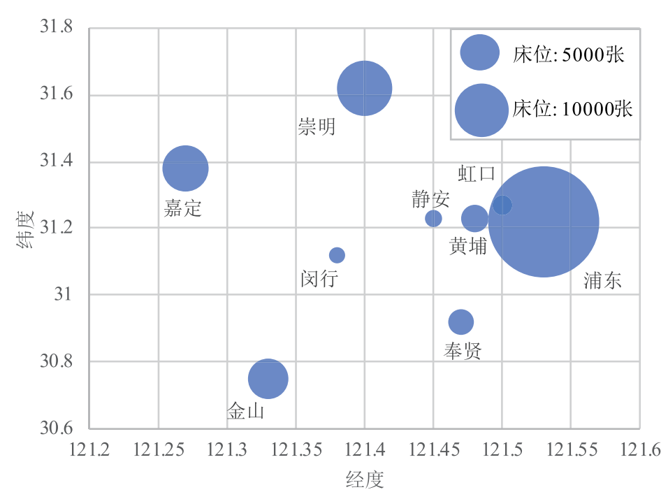 圖1 上海市部分方艙醫院分布及床位數